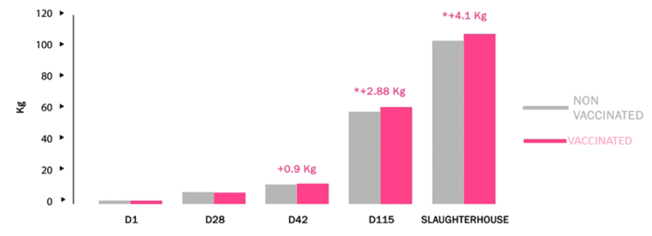 Figure9. Effect of vaccinationon piglet mortality due to edema disease (Mallorqui J. Et al. J Swine HealthProd. 2018;26(5):253-261.)
