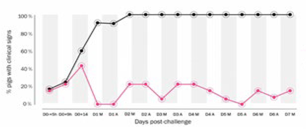Figure 10. – Effect of vaccination on the incidence of clinical signs of edema disease. Figure 10. –Effect of vaccination on the incidence of clinical signs of edema disease.(Mallorqui J.et al. J Swine Health Prod. 2018;26(5):253-261.)